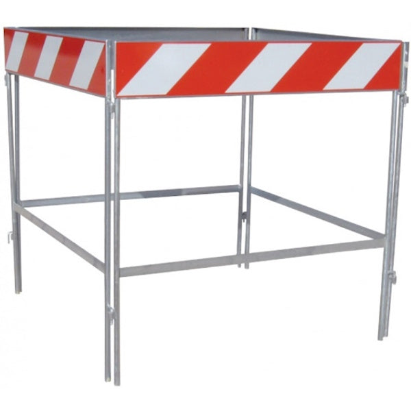 • È l’insieme di varie barriere unite a formare un quadrilatero delimitante un chiusino o altro tipo di portello aperto, dimensioni 100x100x100 cm. pellicola rifrangente bianco/rossa.