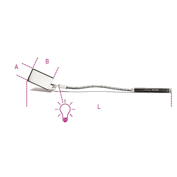 Beta specchietto flessibile rettangolare con illuminazione art.1715FL/B. Dotato di asta flessibile, impugnatura e luce LED. Specifiche articolo Attributo Valore A... Per saperne di più