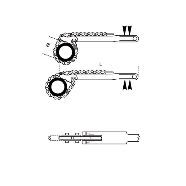 • Il sistema di fissaggio a catena porta con se notevoli vantaggi, offre la possibilità di utilizzo anche in situazioni dove si ha poco spazio di manovra o quando è necessario distribuire la forza di presa su tutta la superficie del tubo.