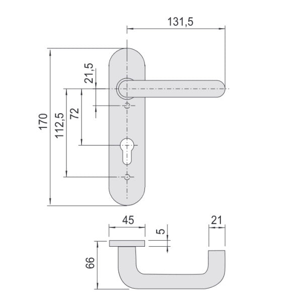 • Placca con maniglia e foro cilindro.
