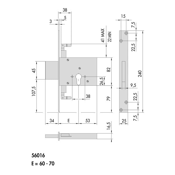 CISA SERRATURA DA INFILARE A CILINDRO YALE AMBIDESTRA
