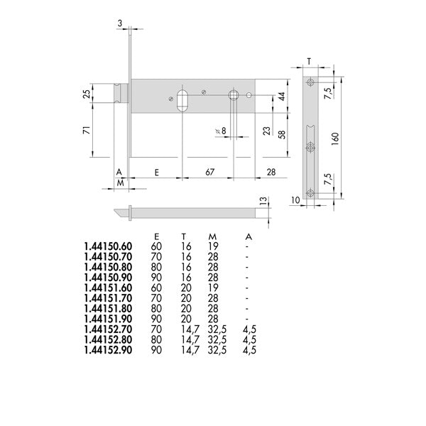 CISA SERRATURA DA INFILARE PER FASCE H.MM44 FRONTALE MM16 AMBIDX