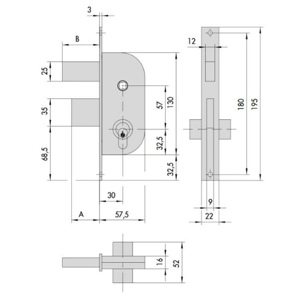 Cisa serratura da infilare senza cilindro, per cancelli. Cilindro da ordinare a parte. Scatola in acciaio con rivestimento in zinco.... Per saperne di più