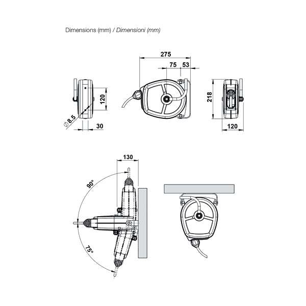 • Avvolgitubo automatico adatto per la distribuzione di aria compressa ad uso professionale.