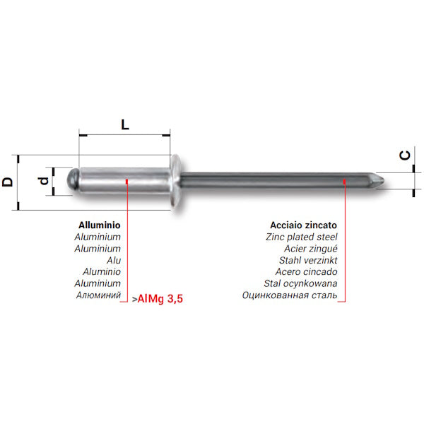 FAR RIVETTI IN LEGA DI ALLUMINIO