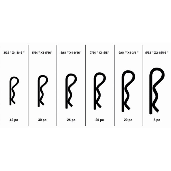 • La scatola ha al suo interno 150 copiglie così suddivise: