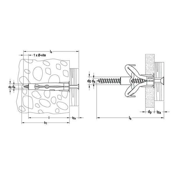 • Le alette anti-rotazione impediscono la rotazione del fissaggio nel foro.