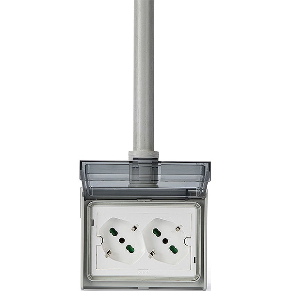FME MULTIPRESA DA PARETE 2 SCHUKO BIPASSO IN CUSTODIA IP55 3 MODULI