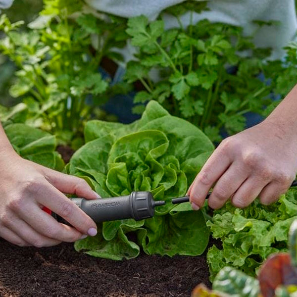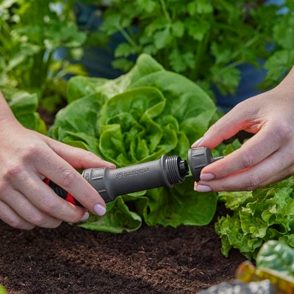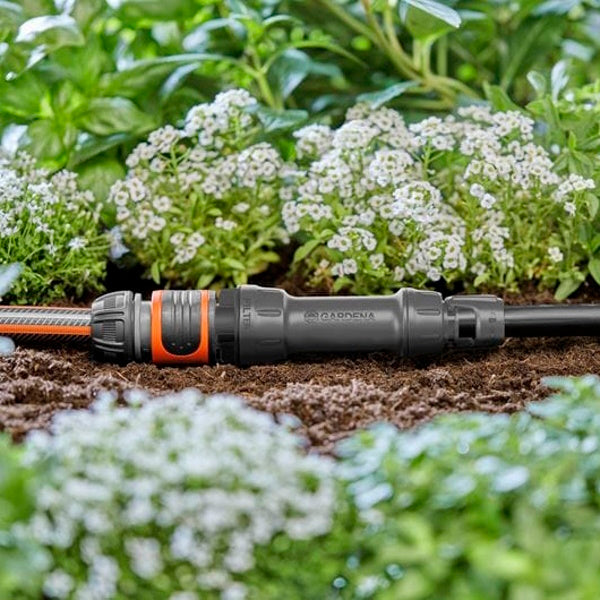 • L'attrezzo base fornisce l'acqua regolata alla pressione ideale per il funzionamento ottimale di tutti i gocciolatori, tubi e microspruzzi collegati all'impianto Micro-Drip-System Gardena.