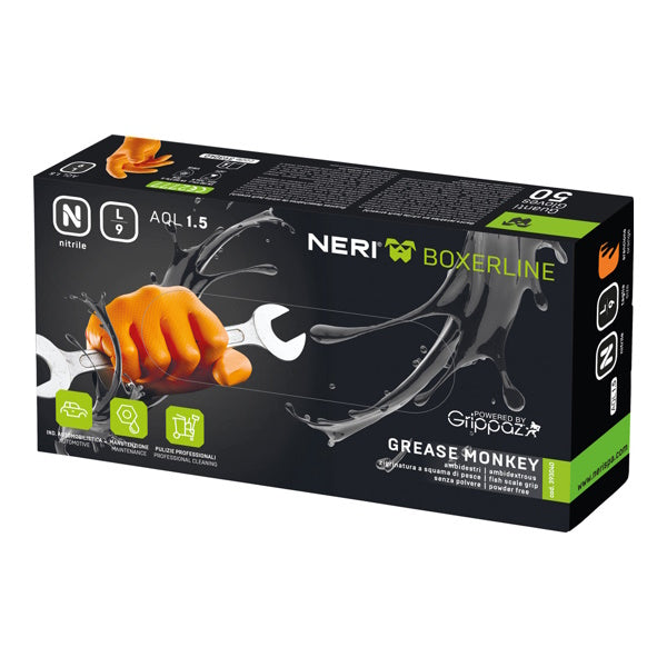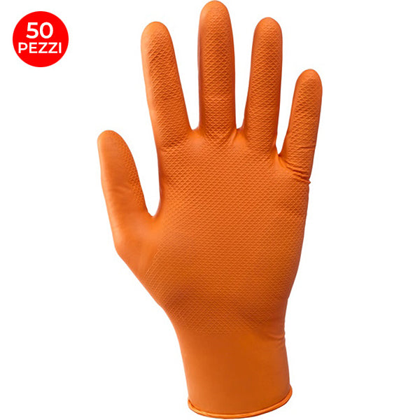 GUANTI MOD. GREASE MONKEY IN NITRILE COLORE ARANCIO TGXXL CONF.DA PZ.50*