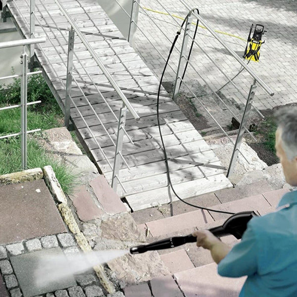 • La prolunga del tubo flessibile ad alta pressione da 9 mt. offre una maggiore flessibilità e aumenta l'area di lavoro della tua idropulitrice.
