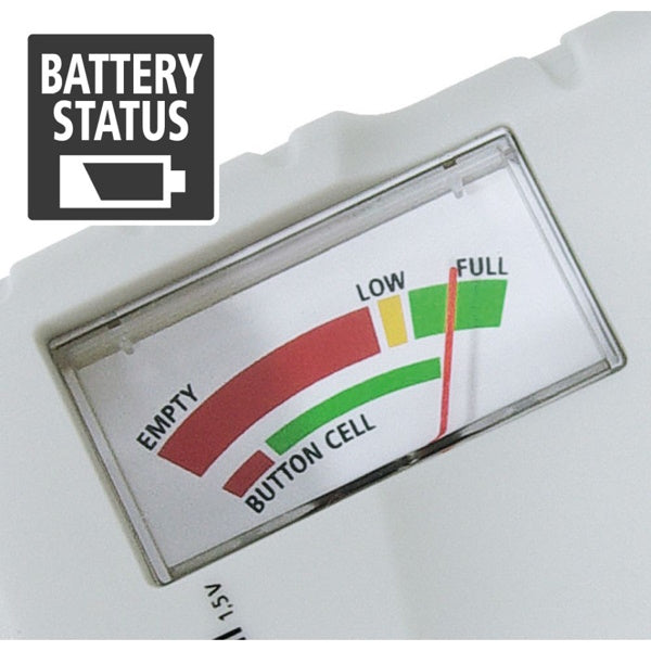• Il tester per batterie permette un controllo preciso dello stato di carica di tutte le comuni batterie (cella a bottone/blocco AA/AAAA/C/D/D/E).