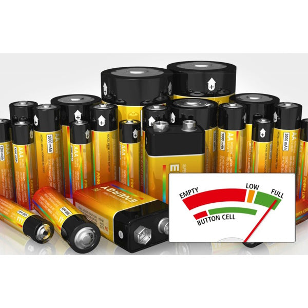 • Test precisi di tutte le batterie comuni (AA/AAA/C/D/E-block/pila a bottone).