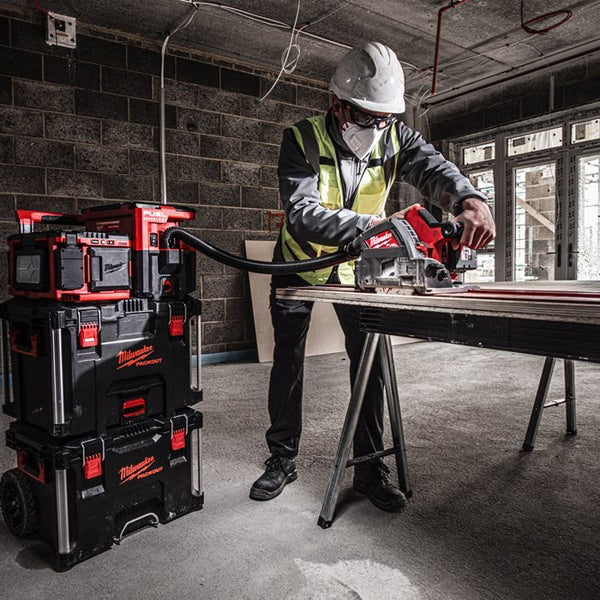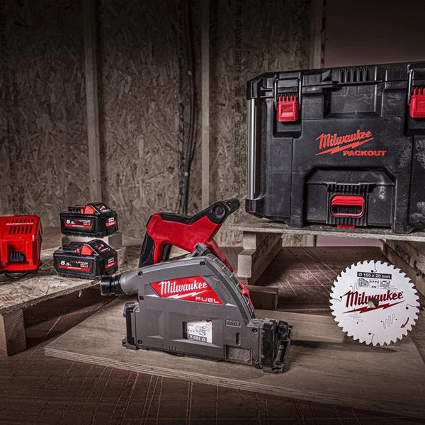 • La sega ad affondamento M18 FUEL" garantisce le stesse performance di un modello a filo. La sega taglia 45 m di compensato, spessore 18 mm con una batteria da 5.5 Ah.