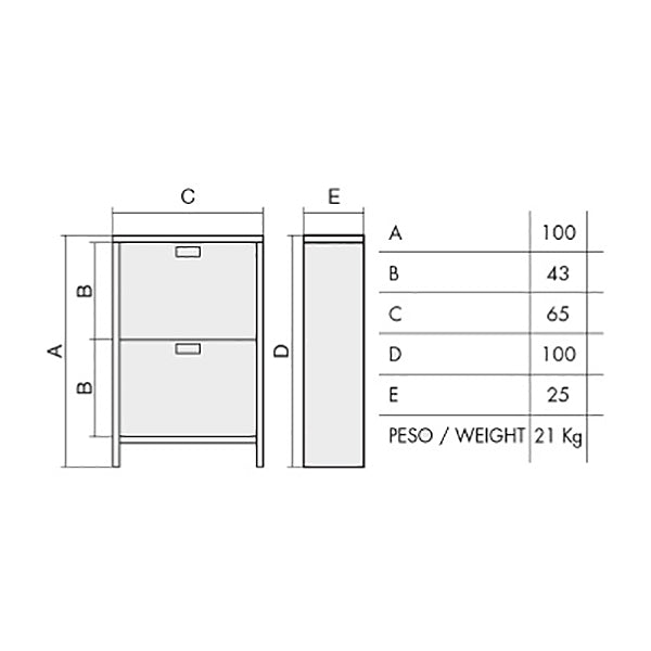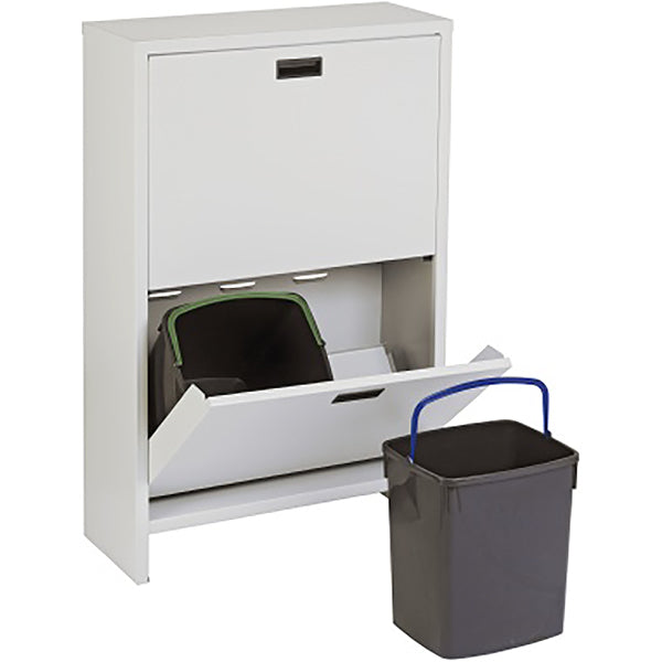 • Mobiletto ventilato in lamiera elettrosaldata verniciato a forno in polvere epossidica a due ribalte sovrapposte contenenti due secchi da 20 lt. ognuna.