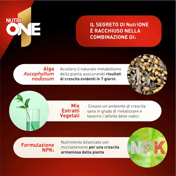 • NutriONE NutriGOCCIA è un formulato ricco di sostanze nutritive e idratanti con tutta l'efficacia del concime NutriONE.
