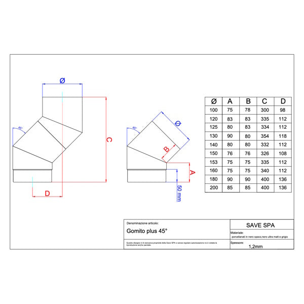 Save Plus gomito a 45° porcellanato per stufe a legna. Ideale per stufe a: legna, carbone, gas, gasolio kerosene. Specifiche... Per saperne di più
