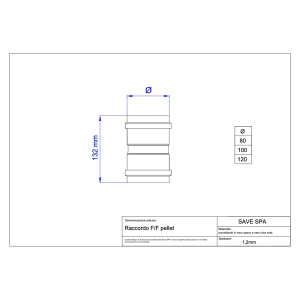 Save raccordo per stufe a pellets femmina/femmina porcellanato.