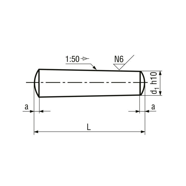 SPINA CONICA RETTIFICATA IN ACCIAIO UNI 7283 D.MM 6X 50