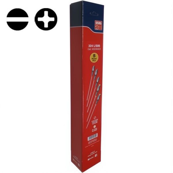 Usag 324 L/SH5 serie di 5 giraviti a taglio e a croce Phillips. Modello con lama lunga. Punta zincata che... Per saperne di più
