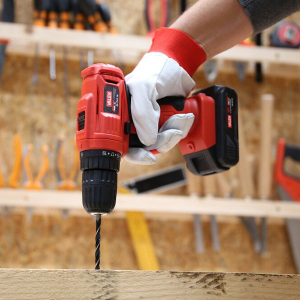 Valex trapano avvitatore a batteria 18V art.M-TA1 18 K1. Reversibilità, 2 velocità meccaniche, 19+1 frizioni. Mandrino autoserrante. Arresto immediato della... Per saperne di più
