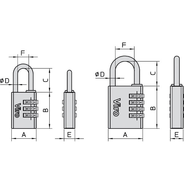 VIRO LUCCHETTO SERIE 406 CON 4 COMBINAZIONI IN OTTONE MM40