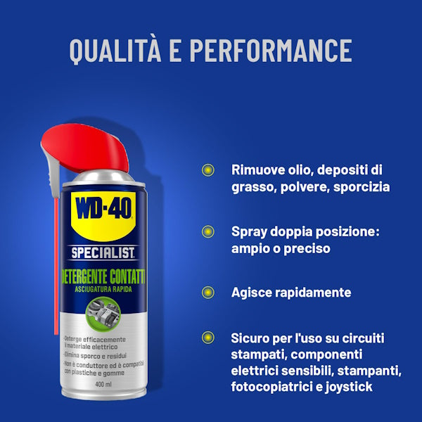 Wd-40 Specialist Detergente Contatti Asciugatura Rapida spray. Dissolve efficacemente l’unto, i depositi di grasso, la sporcizia, la polvere, i residui... Per saperne di più