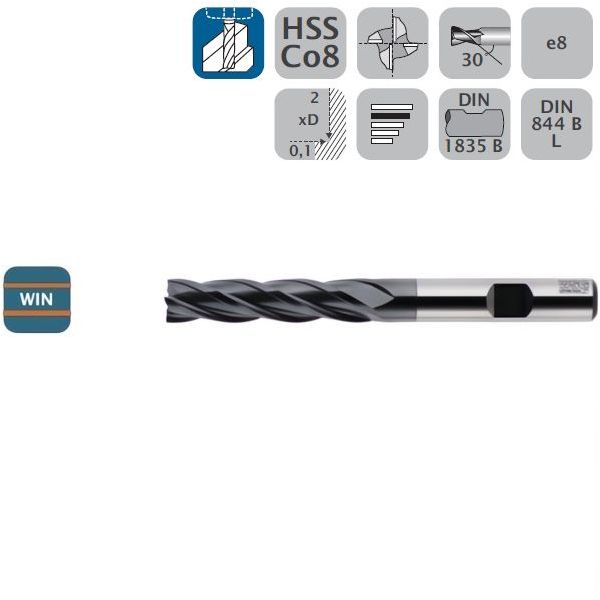 WSG FRESA CILINDRICA PER FINITURA LUNGA 4T HSS CO8 WIN D.MM16,0X123
