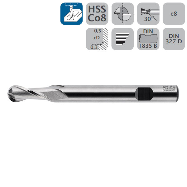 WSG FRESA CILINDRICA SEMISFERICA CORTA 2T HSS CO8 D.MM 4X 51*